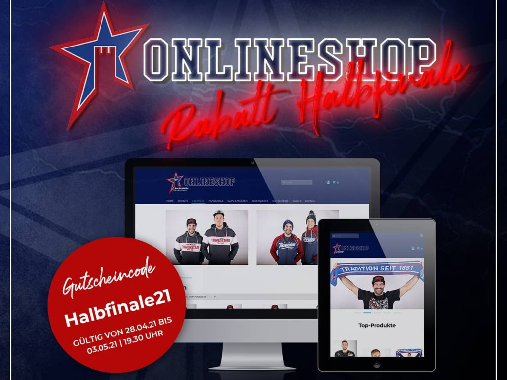Die Towerstars haben sich am Mittwochabend dank einer starken Teamleistung mit dem 1:1 Ausgleich in der Halbfinalserie gegen Kassel belohnt. Als Dank fürs Daumendrücken und Mitfiebern an den Livestream-Endgeräten verlängert der Fanshop die Aktion mit einem Halbfinal-Rabatt von 20 Prozent. Um den Rabatt im Onlineshop nutzen zu können, wird beim Bezahlvorgang im Warenkorb einfach der…