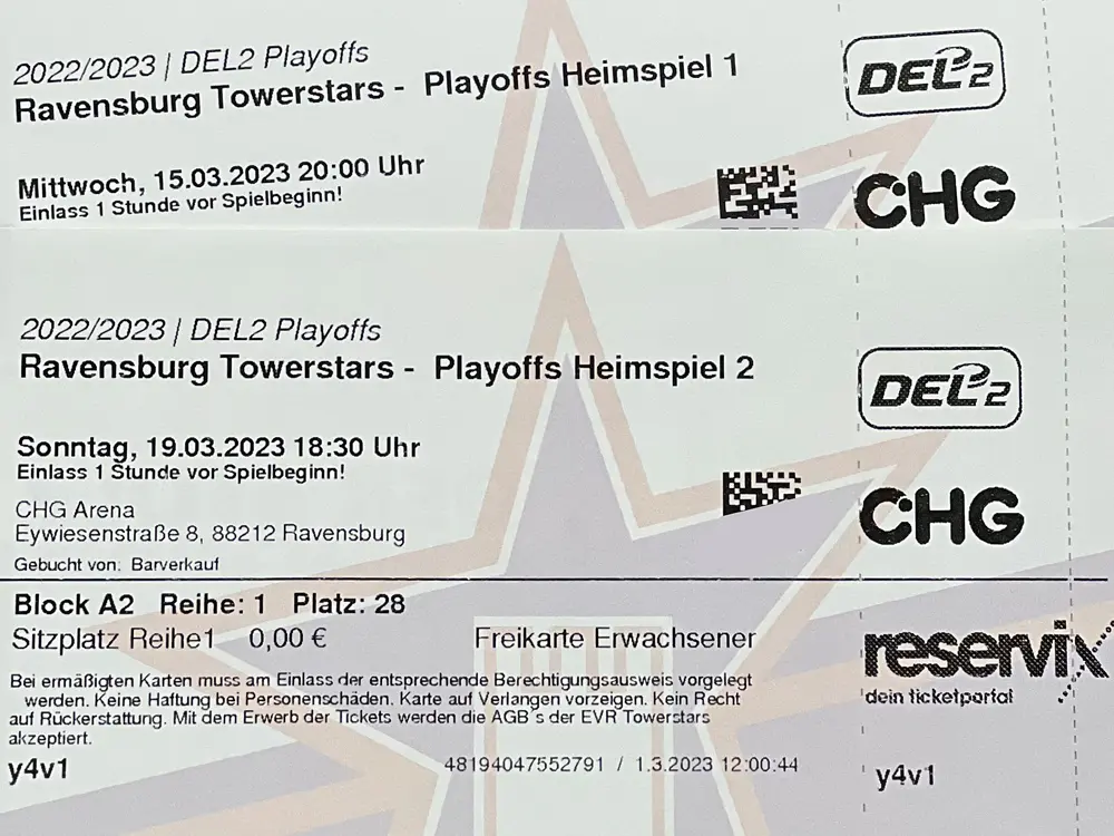 Da bei der „Best-of-seven“ Serie in den Playoffs zwei Heimspiele garantiert sind, sind ab Donnerstag, 02. März, ab 10 Uhr, die Karten bereits für beide Spiele erhältlich. In der ersten Phase des Vorverkaufs haben wieder Dauerkarteninhaber das Vorrecht auf ihren individuellen Platz. Sie können die Spiele entweder online über die Dauerkartenoption im Ticketwebshop durch Eingabe des 4-stelligen Codes oder direkt zu den Öffnungszeiten des Fanshops in der Marktstraße 20 hinzubuchen. Ein Ausdruck von Papiertickets ist nicht erforderlich, da Sie zum Einlass in die CHG Arena weiterhin Ihre Dauerkarte nutzen. Die Preise für die Viertelfinalspiele orientieren sich an den Tageskarten der Hauptrunde, einen Playoff-Zuschlag gibt es für die anstehenden Viertelfinalspiele nicht.