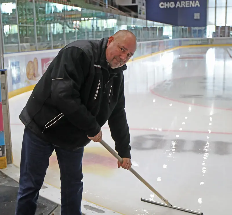 Zu sehen sind auch die Towerstars, die auf die Dienste der Eismeister im Training und bei den Heimspielen zuverlässig zurückgreifen.