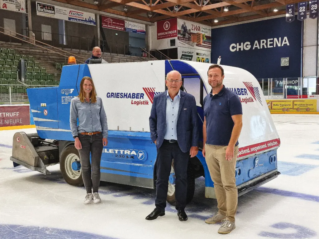 Seit einem Jahr sind die Mitarbeiter und Kunden der GRIESHABER Logistik GmbH nicht nur begeisterter Zuschauer der Eishockey-Spiele der Ravensburg Towerstars. Der regionale Speditions- und Logistikdienstleister unterstützt auch als Sponsor das erfolgreiche Team der Ravensburger Eishockey-Mannschaft. Insbesondere die Eismaschine ist Werbeträger und zeigt das Engagement von GRIESHABER Logistik. „Es ist uns ein Anliegen als sportbegeistertes Unternehmen Mannschaften in der Region zu unterstützen. Die DEL2 Spiele bieten neben dem Sportereignis selbst ein gesellschaftliches Event und stärken unsere Gemeinschaft“, sagt Roland Futterer, Geschäftsführer Finanzen, Personal und Service der GRIESHABER Logistik GmbH.