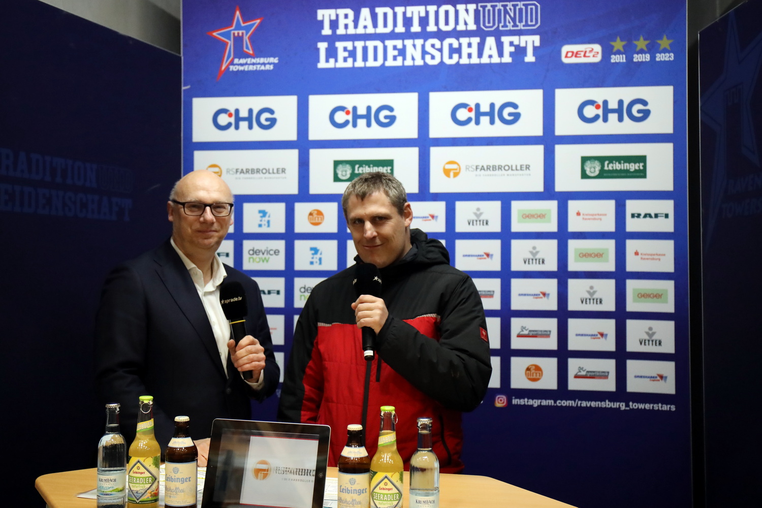 Für die Gäste-Gruppe begann der Abend schon lange vor Spielbeginn. Bei einer Pre-Game-Besprechung wurden zunächst die Aufgaben verteilt, denn es gab viel Arbeit. Beispielsweise bekamen die Towerstars-Betreuer Unterstützung beim Vorbereiten der Spielerbank. Auch am Fanstand freute man sich über die helfenden Hände. Währenddessen bekamen die Helfer für die Straf- und Zeitnehmerbank sowie die SpradeTV-Produktion einen Einblick in die Tätigkeiten des Abends. Das war freilich vor dem Hintergrund sehr interessant, da in diesen Bereichen ein normaler Zuschauer keine Einblicke hat. Selbstverständlich gab es ausreichend Gelegenheit, auch individuelle Fragen zu stellen. 30 Minuten vor Spielbeginn wurde es dann zum ersten Mal richtig spannend, als die Gruppe beim Eröffnungsinterview des Livestreams von SpradeTV zu Gast war.