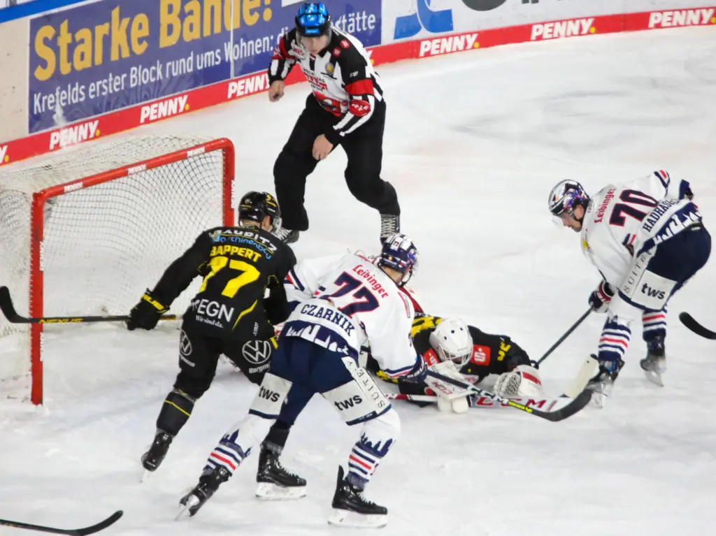 Die Ravensburg Towerstars haben das Duell der Tabellennachbarn bei den Krefeld Pinguinen mit 4:2 gewonnen und sich bis auf einen Punkt auf Platz 3 herangekämpft. Das Team von Coach Peter Russell überzeugte vor allem defensiv und über die gesamte Spieldistanz mit mannschaftlicher Geschlossenheit.
