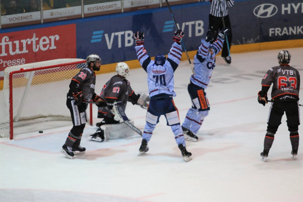 Noch waren dreieinhalb Minuten zu spielen, die Towerstars warfen alles nach vorne. Frankfurt konnte sich zum Teil befreien, allerdings ohne in Puckkontrolle zu kommen. Die Towerstars zogen erneut den Torhüter und zogen die Powerplay-Schlinge immer enger. 38 Sekunden vor dem Schlussgong fiel die Scheibe hinter dem Frankfurter Torhüter auf die Torlinie, dort musste Robin Just den Puck nur noch über die Linie schieben.