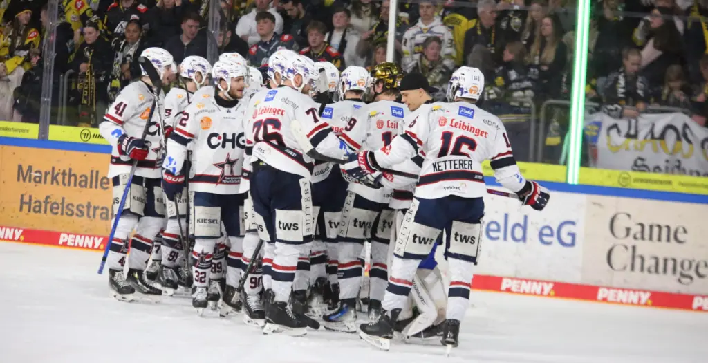 Dass die Krefeld Pinguine mit mehr Zug zum Tor aus der Pause kommen würden, überraschte freilich nicht. Knapp dreieinhalb Minuten nach Wiederanspiel passte die Zuordnung vor dem Tor nicht und der letztlich frei stehende Lucas Lessio brachte den Puck hinter dem bereits ausgespielten Ilja Sharipov zum 1:1 über die Linie. Bitter war dies auch vor dem Hintergrund, dass Sekunden zuvor Nick Latta auf der Gegenseite am linken Pfosten angespielt worden war, den Puck aber knapp vorbeischoss.