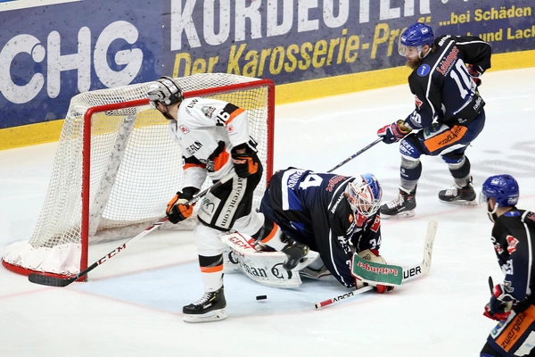 Es war klar, das die Towerstars im Schlussabschnitt früh einen Anschlusstreffer benötigen würden. Dementsprechend zielstrebig spielten die Towerstars die Scheibe nach vorne. Das Problem, dass Frankfurt äußerst kompakt in der eigenen Zone stand, blieb allerdings bestehen. Und wenn sich eine vielversprechende Einschussmöglichkeit eröffnen sollte, war Andryukhov im Löwen Tor auf dem Posten.