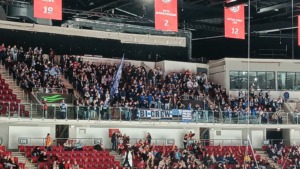 Bei dieser tabellarischen Ausgangslage waren die Punkte gegen den Tabellenachten Düsseldorf quasi doppelt so viel wert. Dementsprechend zielstrebig und konzentriert kam das Ravensburger Team trotz siebeneinhalbstündiger Busreise aufs Eis. Eine deutliche Motivationsspritze war freilich auch der Blick auf die Gästeblöcke. Etwa 350 Ravensburger Fans waren mit dabei und sorgten unter den 6.427 Zuschauern im weiten Rund des PSD Bank Dome für gute Stimmung.