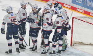 Nun rochen die Gastgeber Lunte, gingen volles Risiko und nahmen zweieinhalb Minuten vor dem Ende den Torhüter zugunsten eines sechsten Feldspielers vom Eis. Mit Erfolg, denn in der 59. Minute drückte Ture Linden den Puck über die Innenseite der Beinschiene von Nico Pertuch zum 2:3 über die Linie. Sollte den Towerstars der sicher geglaubte Sieg womöglich in der letzten Minute noch durch die Finger gleiten? Nein – es passierte nichts mehr und die Towerstars brachten unter dem Jubel der Fans die drei verdienten Punkte über die Zeit.