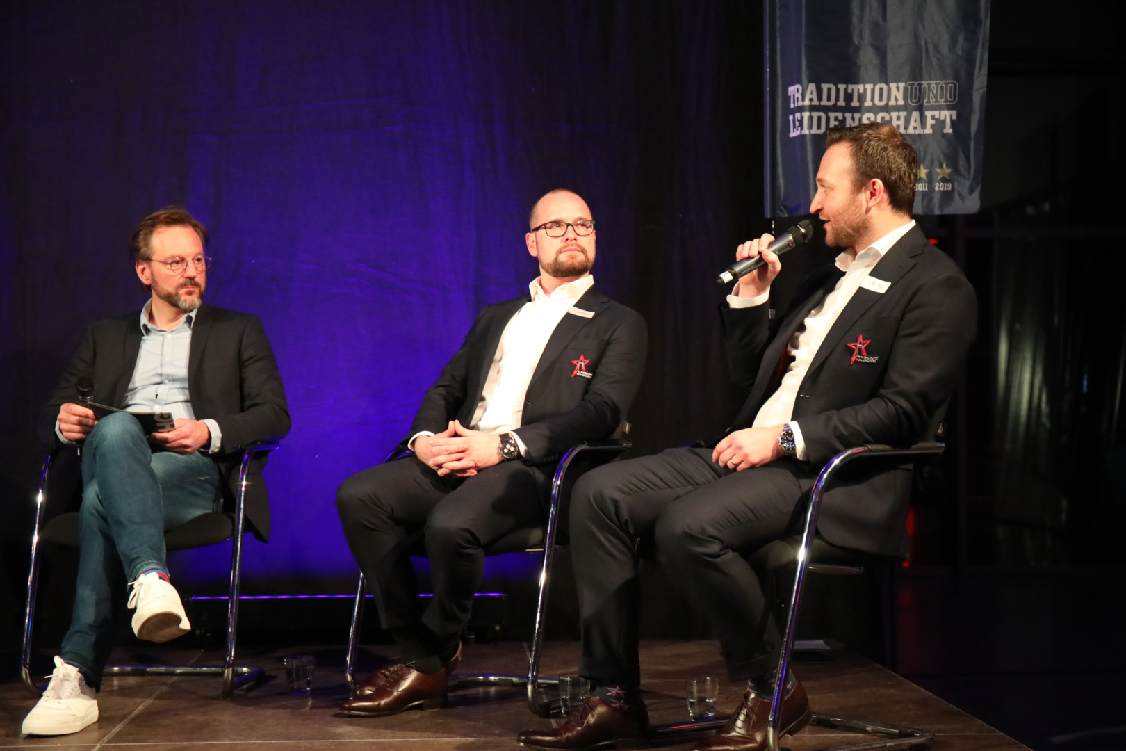 Weitere Gesprächsteilnehmer bei Moderator Matthias Steybe, dem Leiter Kommunikation und Marketing der CHG MERIDIAN, waren Frank Kottmann (Vorsitzender des Towerstars Aufsichtsrats sowie des DEL2 Aufsichtsrats) sowie die Towerstars Geschäftsführer Raphael Kapzan und Daniel Heinrizi. Auch von ihnen erhielten die interessierten Gäste einen kompakten Rück- und Ausblick auf die mittelfristigen Zukunftspläne der Towerstars in Bezug auf die notwendigen Voraussetzungen, um zur Saison 2025/26 um den Aufstieg in die PENNY DEL mitspielen zu können.