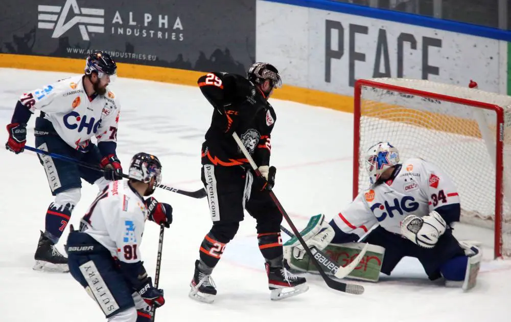 Dass die Gastgeber von Beginn an mit hohem Tempo das Spiel an sich reißen wollten, überraschte freilich nicht. Die Löwen Frankfurt checkten aggressiv und früh mit zwei Stürmern vor, die Towerstars Defensive war hierauf aber gut vorbereitet. Sie nutzte den dadurch sich ergebenden Raum für ein schnelles Überbrücken der neutralen Zone. So auch nach dreieinhalb Minuten, als Sam Herr mit einem weiten Pass auf linker Seite in Szene gesetzt wurde und der Puck nach dem Schuss von Julian Eichinger zum 0:1 für die Oberschwaben im Netz landete. Der frühe Dämpfer schmeckte den Hausherren offensichtlich nicht, denn sie wirkten in der eigenen Zone fehleranfällig und Vincenz Mayer hatte nur eine Minute später frei vor dem Frankfurter Tor das 0:2 auf dem Schläger. Löwen-Keeper Jake Hildebrand war allerdings auf dem Posten. Gleiches galt für Jonas Langmann auf der Gegenseite, als Frankfurts Topscorer Dylan Wruck in Richtung Ravensburger Tor aufgebrochen war.