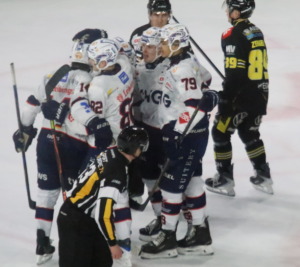 Den Schwung konnten die Oberschwaben über die Drittelpause konservieren und auch im zweiten Spieldrittel hatten sie einen starken Start. Nach mehreren druckvollen Angriffen aller Sturmreihen fälschte Erik Karlsson in der 24. Minute einen Schuss von Julian Eichinger unhaltbar zum 1:3 ab. Die nicht unverdiente Zwei-Tore-Führung war jedoch schnell wieder in Gefahr. Zwar bot die Towerstars-Defensive bereits in der neutralen Zone solide Arbeit, komplett ausschalten ließ sich der hoch dotierte Angriff der Hausherren aber nicht gänzlich. So auch in der 29. Minute, als Routinier Marcel Müller seinen Kollegen Mark Zengerle stark in Szene setzte und dieser den Puck aus spitzem Winkel zum 2:3 unter die Latte setzte. Das Spiel drohte nun zu kippen und gleich mehrfach musste Ilya Sharipov sprichwörtlich Kopf und Kragen riskieren. Der Ausgleich schien in der Luft zu liegen, doch in den letzten zwei Minuten des Mitteldrittels rackerten sich die Towerstars zurück ins Spiel und belohnten sich prompt. Der wieder einmal überragende Mark Rassell zog über halblinks in Richtung Tor, vernaschte mit einer Körpertäuschung zunächst seinen Gegenspieler und dann mit der Rückhand auch noch Felix Bick zum 2:4 – ein Treffer der Marke „Tor des Monats“.