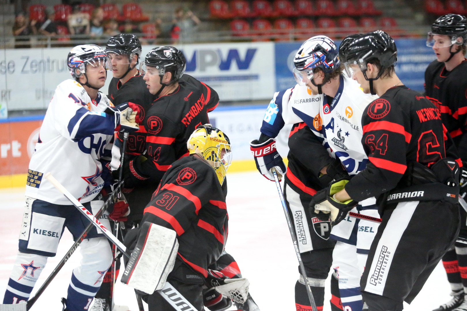 Beim ersten Testspiel in Feldkirch stellte Towerstars Coach Gergely Majoross wie erwartet vier komplette Sturmreihen und vier Defensiv-Duos auf. Im Tor stand Ilya Sharipov. Für beide Mannschaften war es nach zwei Wochen Vorbereitung das erste Testspiel der neuen Saison. Dass die Angriffe auf beiden Seiten noch eher zögerlich nach vorne rollten, war freilich keine Überraschung. Die erste Chance des Spiels verbuchten die Hausherren nach knapp 70 Sekunden, quasi im Gegenzug hatte Towerstars Neuzugang Matt Alfaro aus halbrechter Position die erste vielversprechende Möglichkeit.