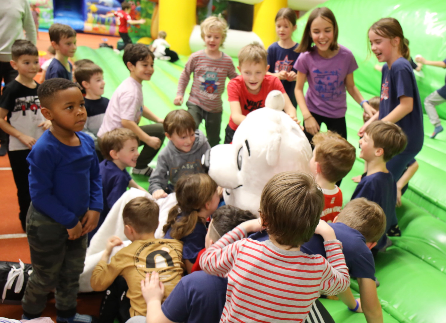 Nach rund einer Stunde ausgelassener Bewegung waren alle Beteiligten dann größtenteils so außer Atem, dass eine Trinkpause gerade recht kam. Zudem konnte sich so auch ein weiterer Gast hinzugesellen: Auch das Maskottchen „Towi“ mischte sich nach einer herzlichen Begrüßung unter die Kids und hüpfte bei der zweiten Spiel- und Spaß-Runde sprichwörtlich bis zum Umfallen mit. Übrigens machte „Towi“ im „Lufti“ in Liebenau auch einige neue Freunde und konnte sich vor „Gib mir 5“ Wünschen“ und herzlichen Umarmungen kaum retten.
