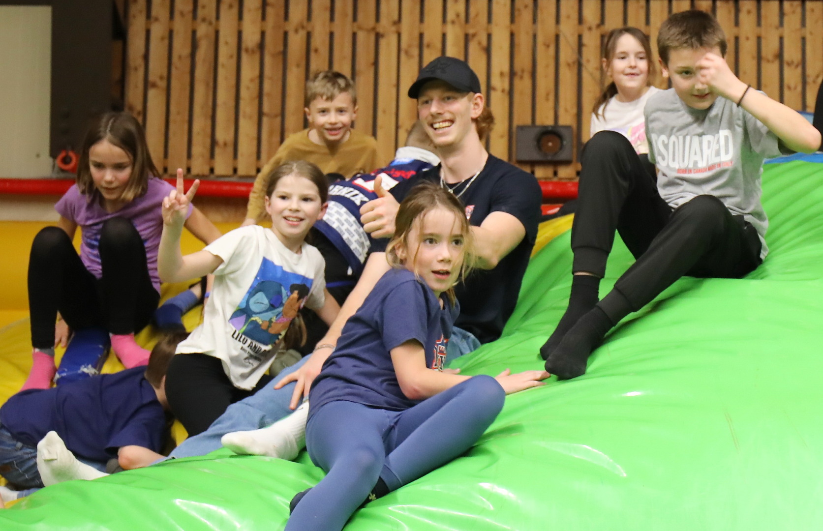Viel Spaß hatten die Mitglieder des Mini Stars Kids Club, die Spielerpaten und nicht zuletzt das Maskottchen „Towi“ bei einem Besuch in der „Lufti Kinderspielwelt“ in Liebenau.